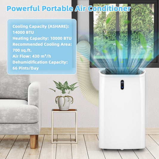 14000 BTU(Ashrae) Portable Air Conditioner with APP and WiFi Control-White