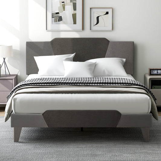 Full/Queen/Twin Velvet Upholstered Bed Frame with High Headboard-Queen Size