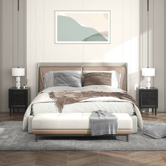 2 Pieces Multipurpose Retro Nightstand with 2 Drawers-Black
