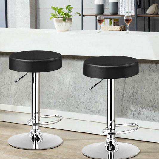 Set of 2 Adjustable Swivel Round Bar Stool Pub Chairs-Black