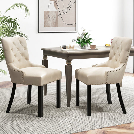 Upholstered Dining Chairs Set of 2 Tufted Wingback Chairs with Rubber Wood Legs-Beige