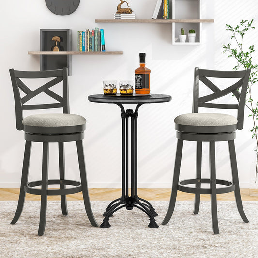 Set of 2 Wooden Swivel Bar Stools with Open X Back and Footrest-24 inches