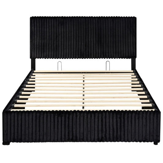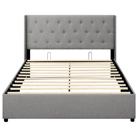 Queen Size Lift-up Storage Bed Modern Linen Upholstered Platform Bed-Beige
