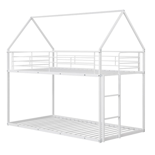 Twin Over Twin Metal Bunk Bed with Roof and Ladder-Black