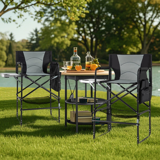 46 Inches Tall Directors Chair with Foldable Side Table and Footrest-Gray