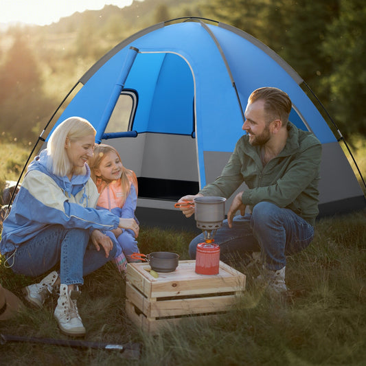 3 Person Outdoor Camping Tent with Removable Floor Mat for Camping Hiking Traveling-Blue