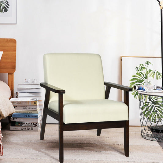 Modern Upholstered Accent Chair with Rubber Wood Legs-Beige