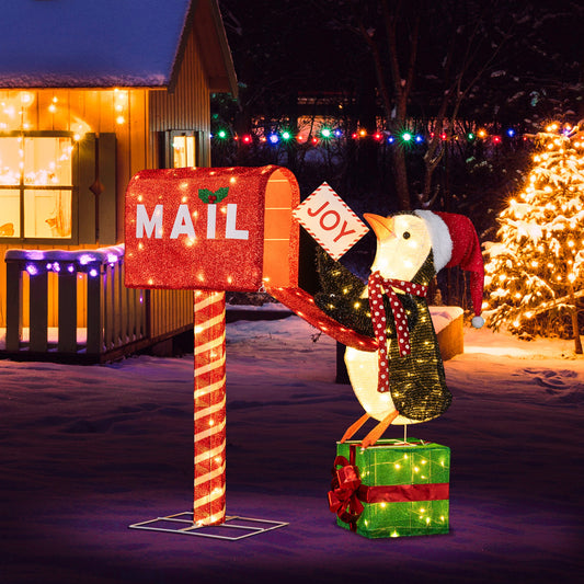 Lighted Christmas Decoration Mailbox and Penguin 3D Pre-Lit Xmas Holiday Decoration