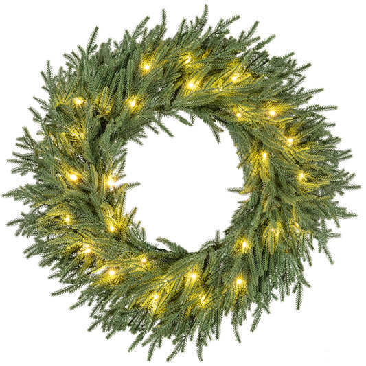 24 Inch Pre-lit Christmas Wreath with 108 Branch Tips and 35 Warm White LED Lights for Wall Window-2 piece