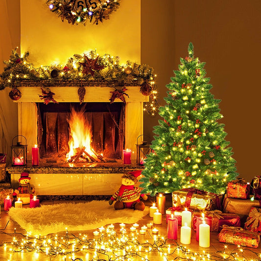 5/6/7/8 FT Artificial Christmas Tree with Warm White LED Lights and 8 Modes for Holiday-5 Feet