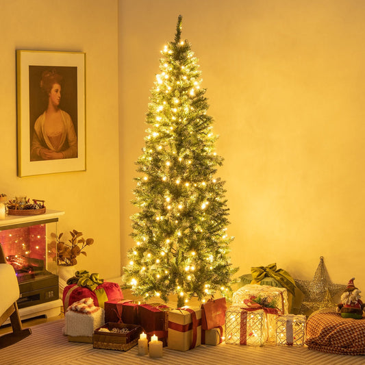 7 Feet PVC Hinged Pre-lit Artificial Fir Pencil Christmas Tree with 150 Lights-7 ft