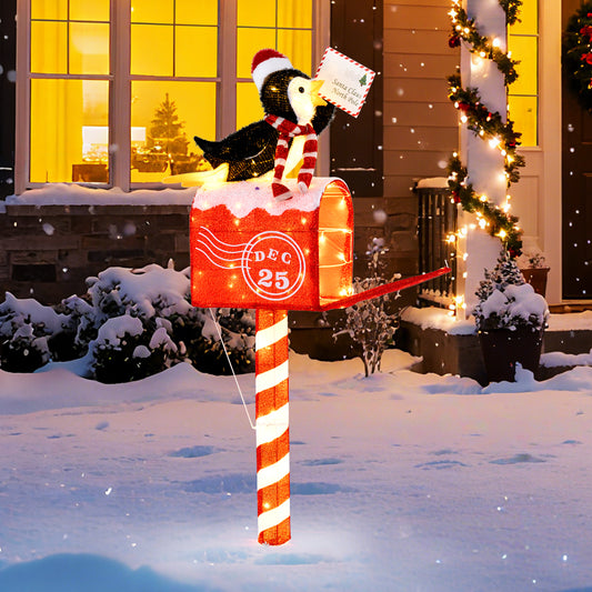 4.8 FT Christmas Lighted Penguin on Mailbox Pre-lit Xmas Decoration with 100 LED Warm White Lights