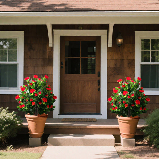 Set of 2 4.5 Feet Artificial Azalea Tree with Cement Pot-Red