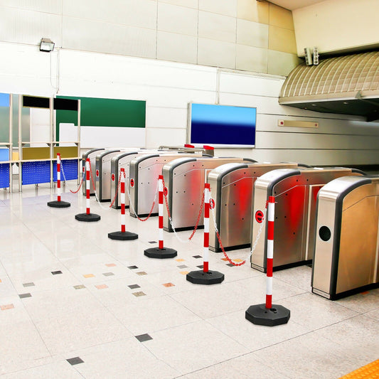 6 Pack 34 Inch Traffic Delineator Poles with 5 Feet Chains and Fillable Base-White