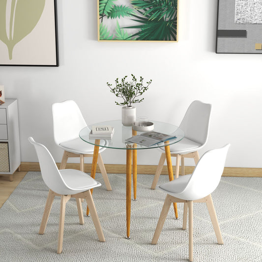 Round Glass Dining Table Leisure Coffee Table with Metal Legs-Natural