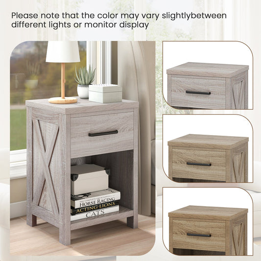 3-Tier Nightstand Bedside Table Sofa Side with Double Shelves Drawer-Black
