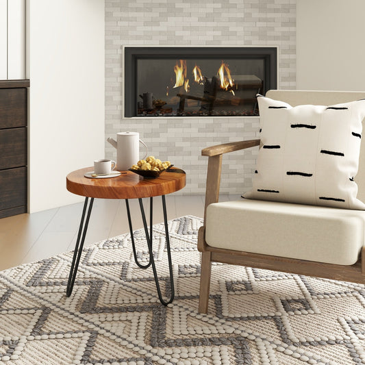 Rustic Round Solid Teak Wood Live Edge Outdoor Side End Table for Patio