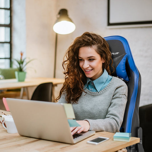 Massage Gaming Chair with Footrest-Blue