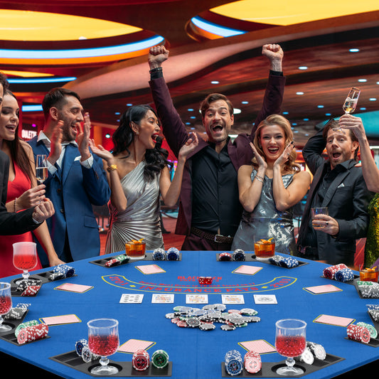 8-Player Foldable Poker Table Top with Carrying Bag-Blue