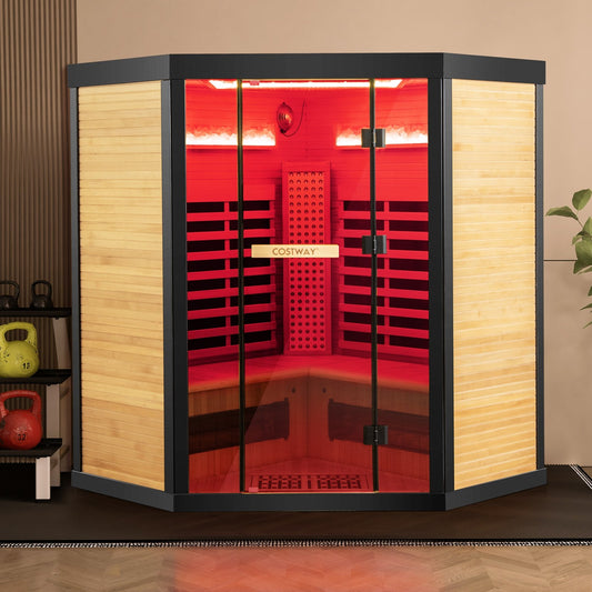 Infrared Wooden Sauna Room for 3 People with Heating Panels and Red Light Tubes