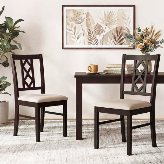 Dining Room Chairs Set of 2 Rubber Wood Dining Chairs with Hollowed Backrest-Brown