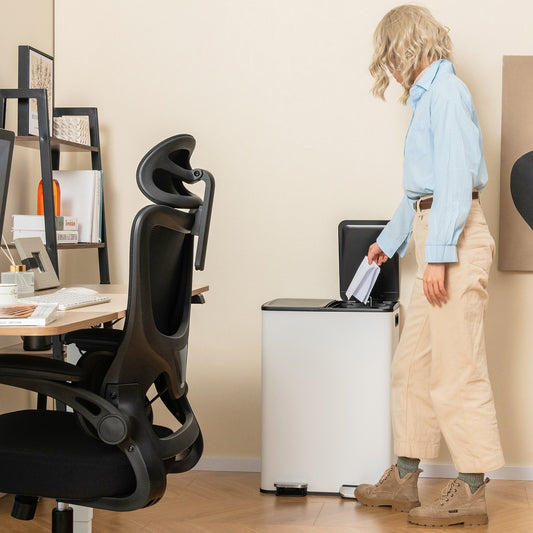10.5 Gal and 1.6 Gal Step Trash Can Combo Set with Detachable Inner Buckets-Silver