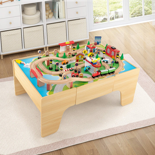 84-Piece Wooden Train Set with Reversible and Detachable Tabletop