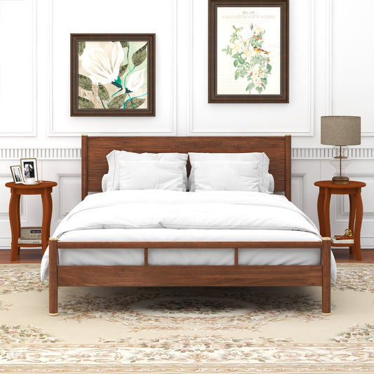 Set of 2 Solid Wood Ring Pattern Farmhouse Round Coffee Tables-Brown