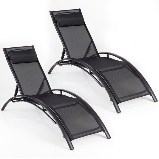 Chaise Lounge Chair Set of 2 Foldable Patio Lounge Chairs-Black