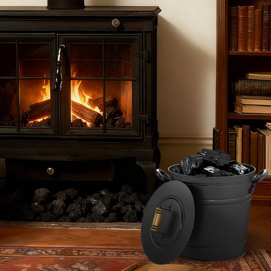 2.9 Gallon Metal Coal Ash Can with Wooden Lid and Side Grips for Fireplace Fire Pits
