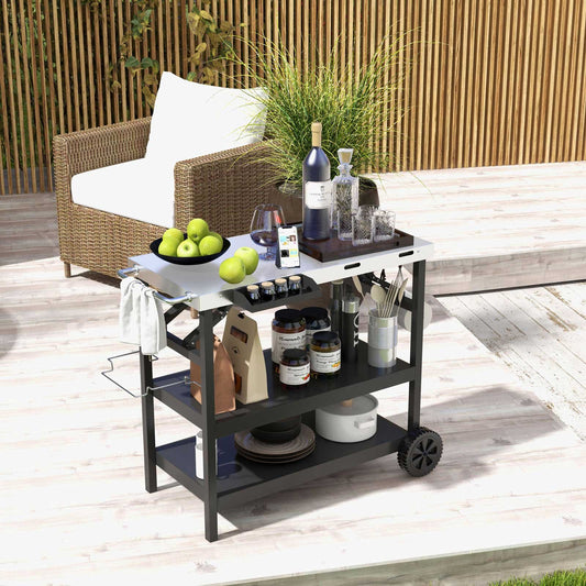 Movable Outdoor Grill Cart with Folding Tabletop and Hooks-Black