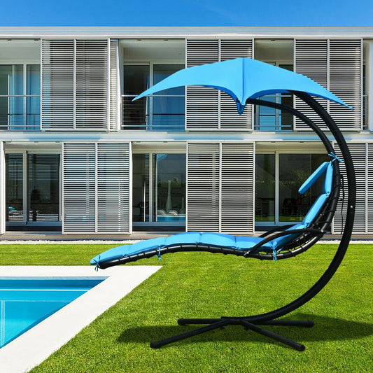 Hanging Stand Chaise Lounger Swing Chair with Pillow-Blue