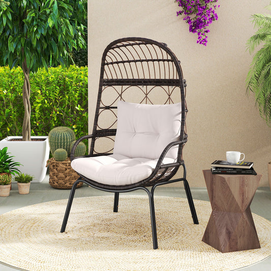 Patio Wicker Egg Chair Outdoor Rattan Lounge Basket with Seat and Back Cushions-Brown