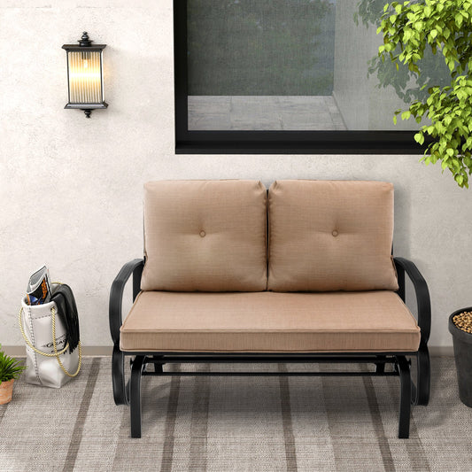 Patio 2-Person Glider Bench Rocking Loveseat Cushioned Armrest-Beige