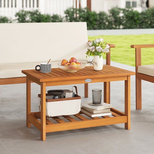 Patio Acacia Wood Coffee Table 2-Tier Rectangular Center Table