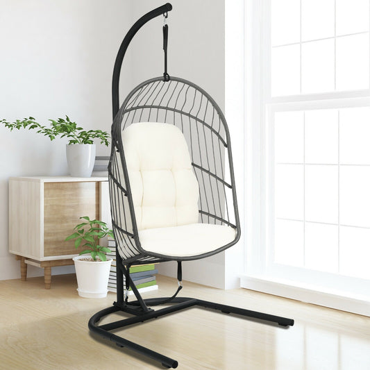 Hanging Wicker Egg Chair with Stand -Beige