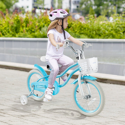 14 Inch Kid's Bike with Removable Training Wheels and Basket-Blue