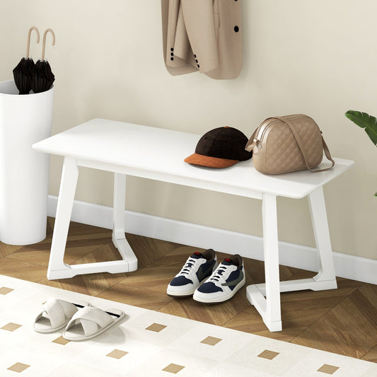 42 Inch Modern Entryway Bench Long Dining Bench with Rubber Wood Legs-White