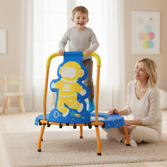 Mini Trampoline for Toddlers with Foam Padded Handle and Safety Padded Cover-Blue