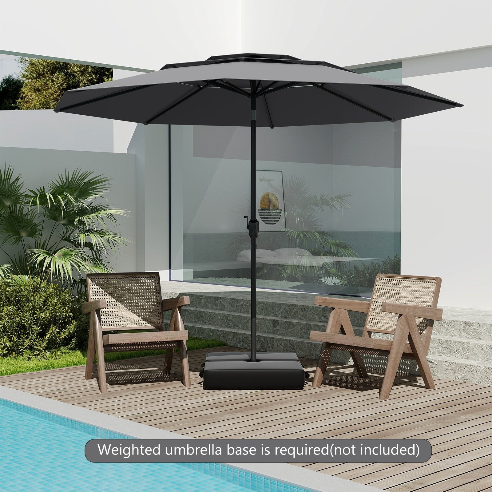 ● 3-tier Vented Design: Thanks to the 3-tiered vented design the patio umbrella offers increased airflow for relaxing on hot summer days. Furthermore this design helps reduce wind pressure on the umbrella minimizing the risk of it being toppled by gusts.