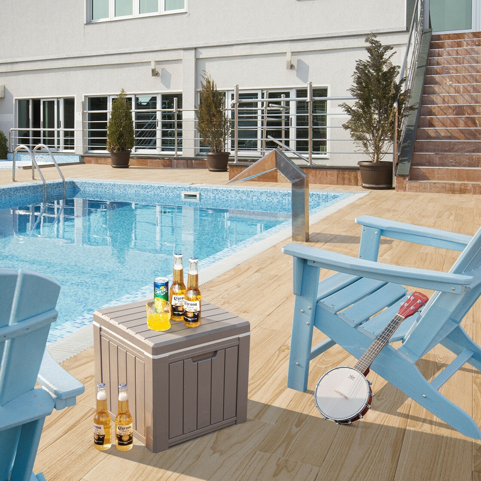 With large storage capacity and good sealing this 10 gallon no-need-plug-in ice cooler can keep your drinks cool for more than 24 hours making it a useful companion for BBQ family gathering camping fishing and more. Meanwhile you can use it as a cocktail side table or a stool to make your outdoor activities more convenient. Besides the compact cooler weighs only 8 lbs and is designed with built-in handles so you can easily carry it anywhere you go. Furthermore the PP material has great durability and water-resistance allowing you to use our ice chest for many years.
