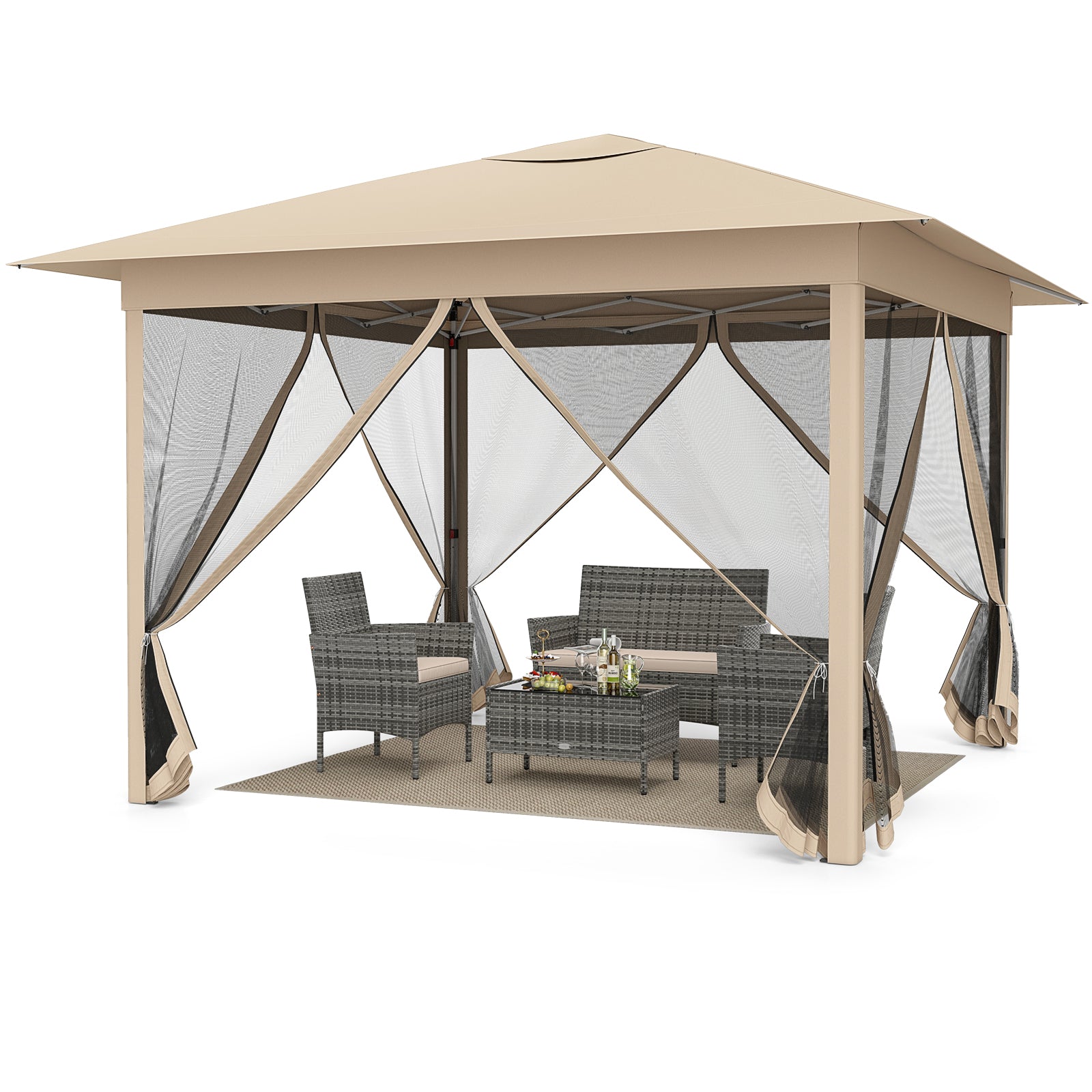 11.5 x 11.5 FT Pop-up Canopy Instant One-Person Setup with Mesh Screen Netting-Beige