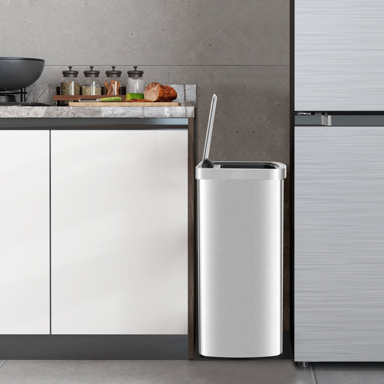 13 Gallons Automatic Garbage Can with Rectangular Infrared Motion Sensor-Sliver