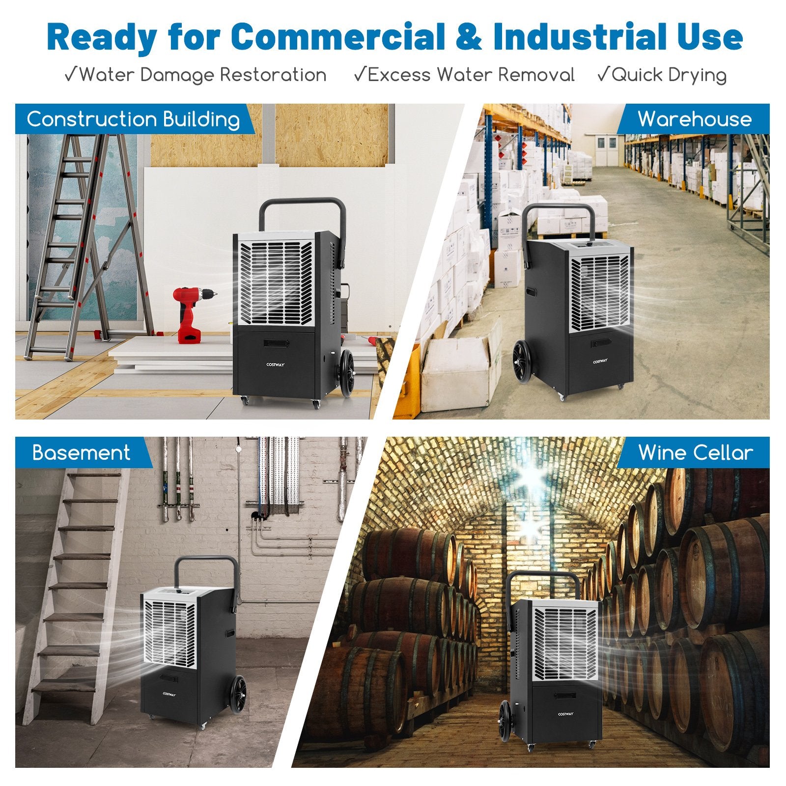 ● Wide Application: This 140-pint commercial dehumidifier is an ideal solution for water damage restoration excess water removal and quick drying in the construction building warehouse basement wine cellar workshop etc.
