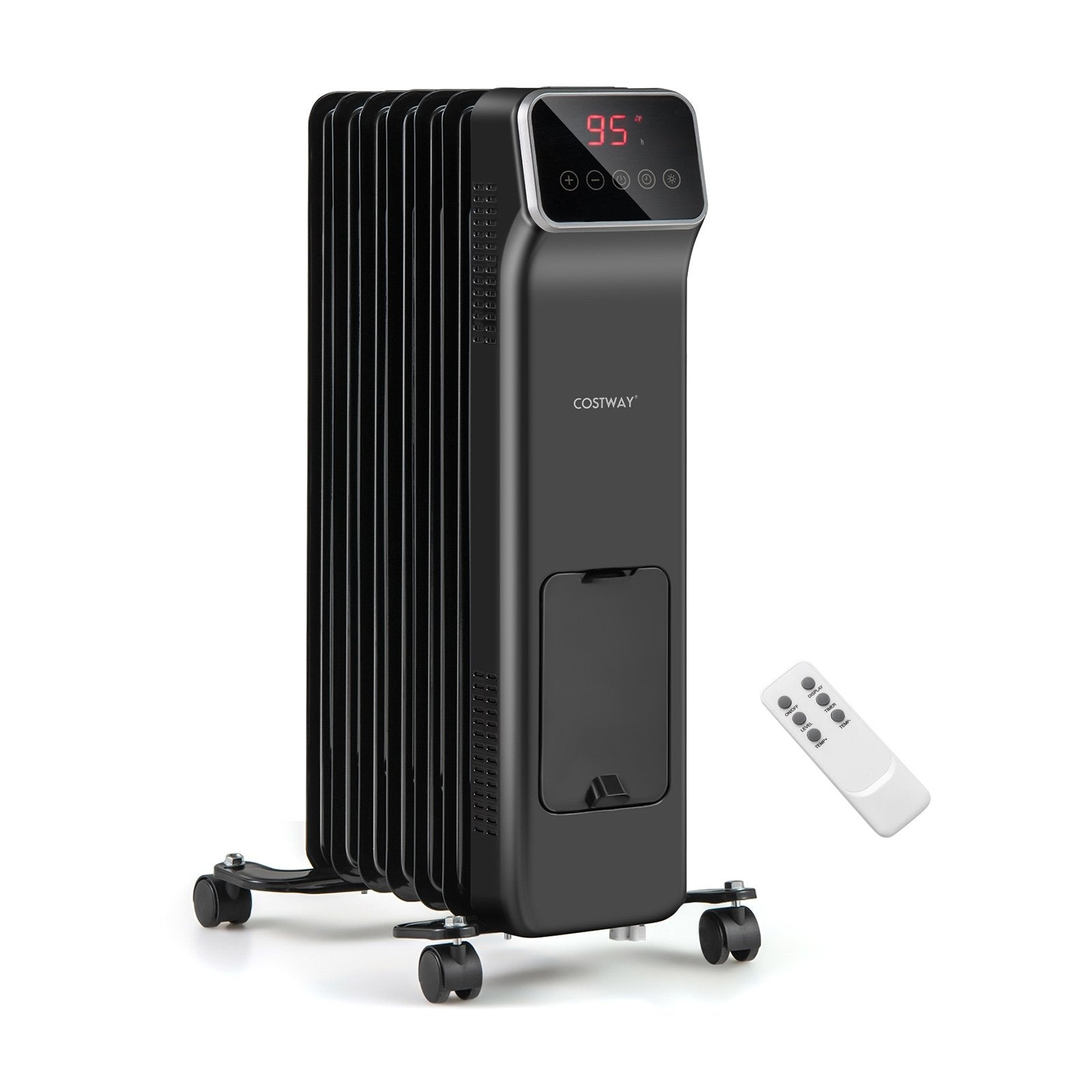 1500W Oil Filled Radiator Heater with Remote Control 3 Modes 24H Timer-Black