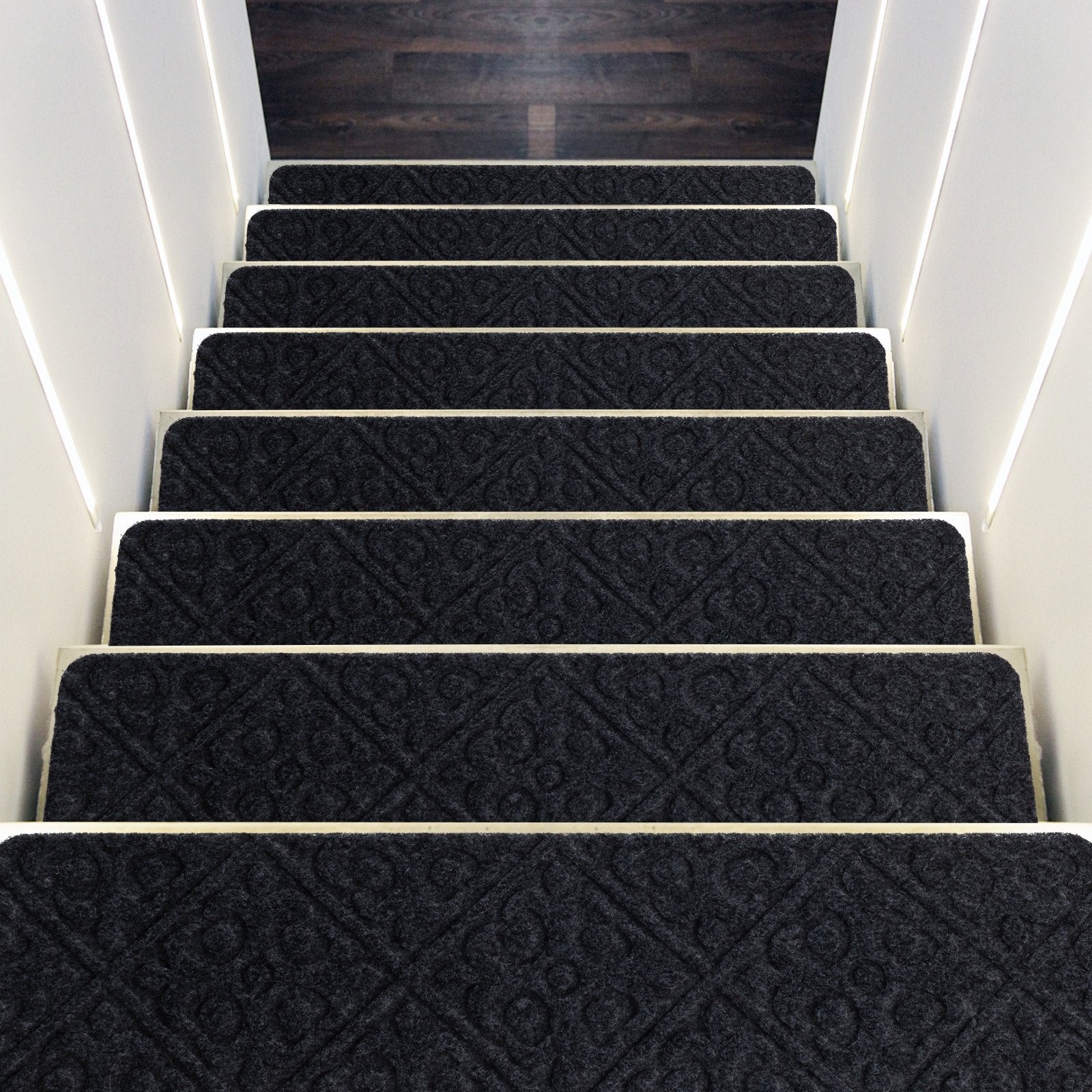 ● Classic and Practical Design: The classic embossed pattern design makes these staircase carpets suitable for any decorative styles and adds elegance to your home. It is suitable for stairways of different sizes as you can easily peel them up to make it fit your stairs.