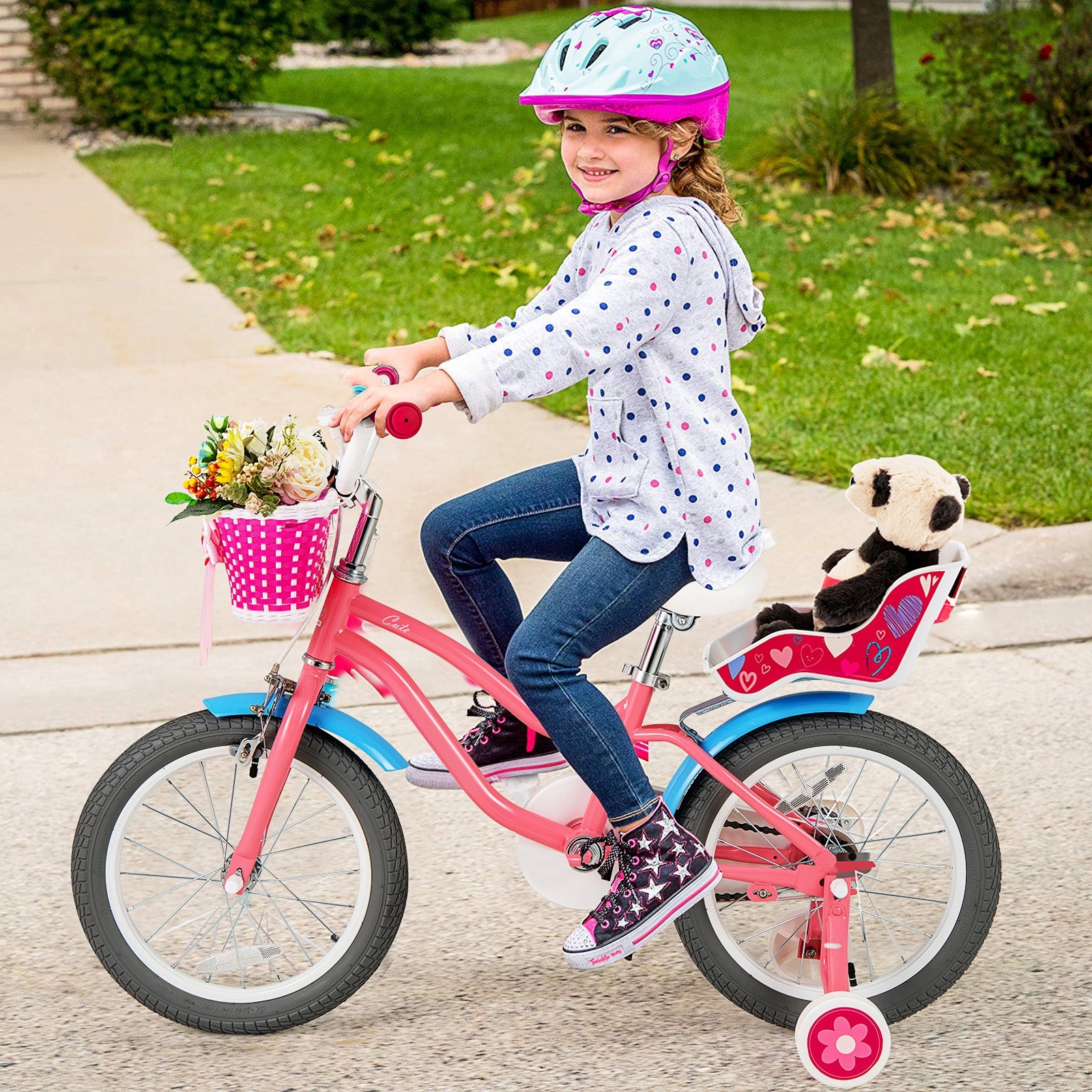 16 Inch Kids Bike with Training Wheels and Storage Basket-16 inches