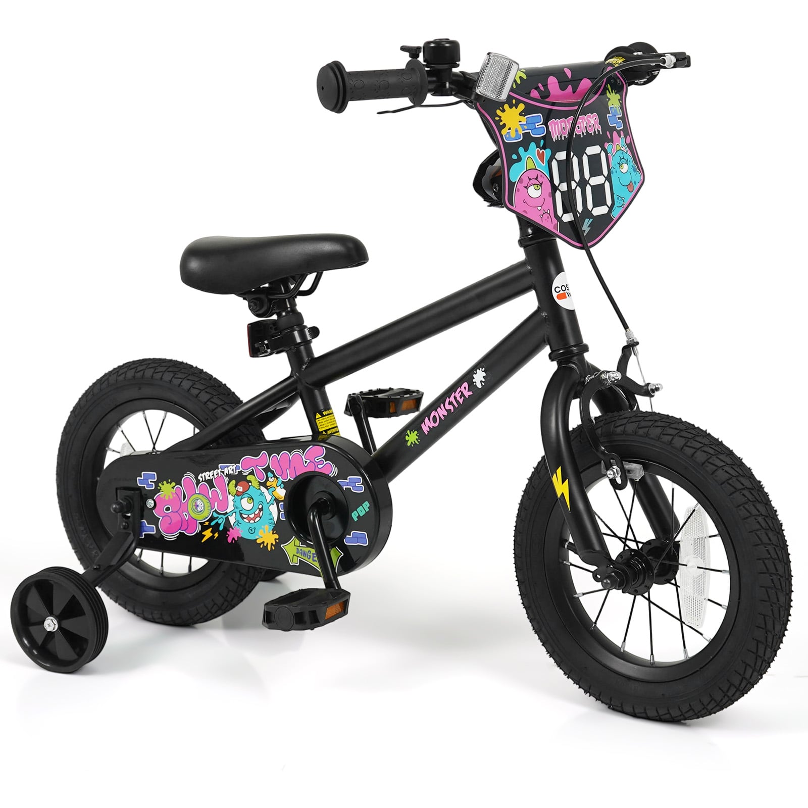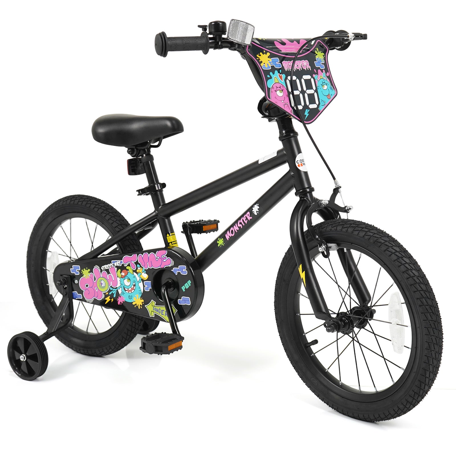 18 Inch Kids Bike with Training Wheels for Ages 4-8 Years Old Black- Street Art Time