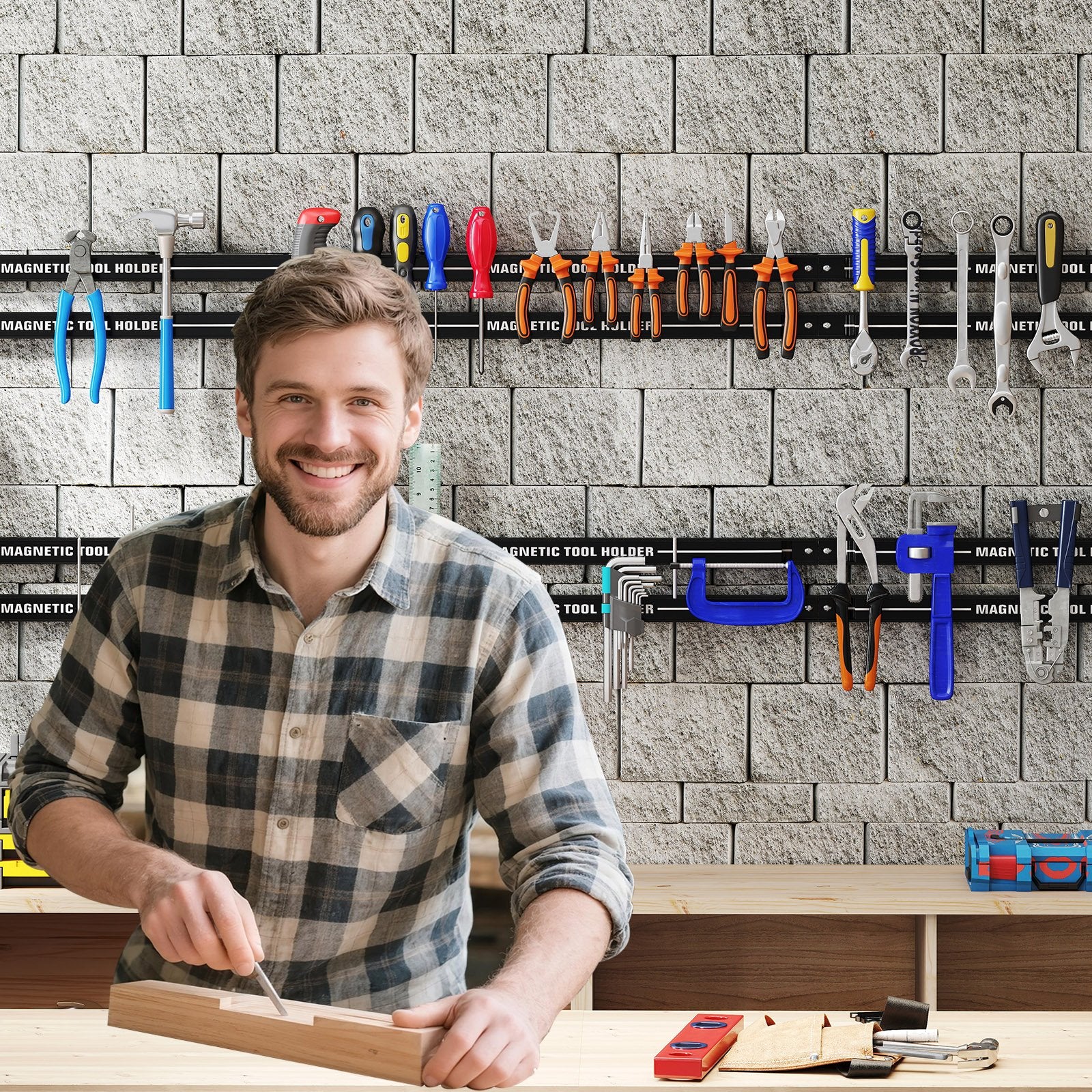 ● 6 packs of 18-inch magnetic tool holders keep your workspace tidy