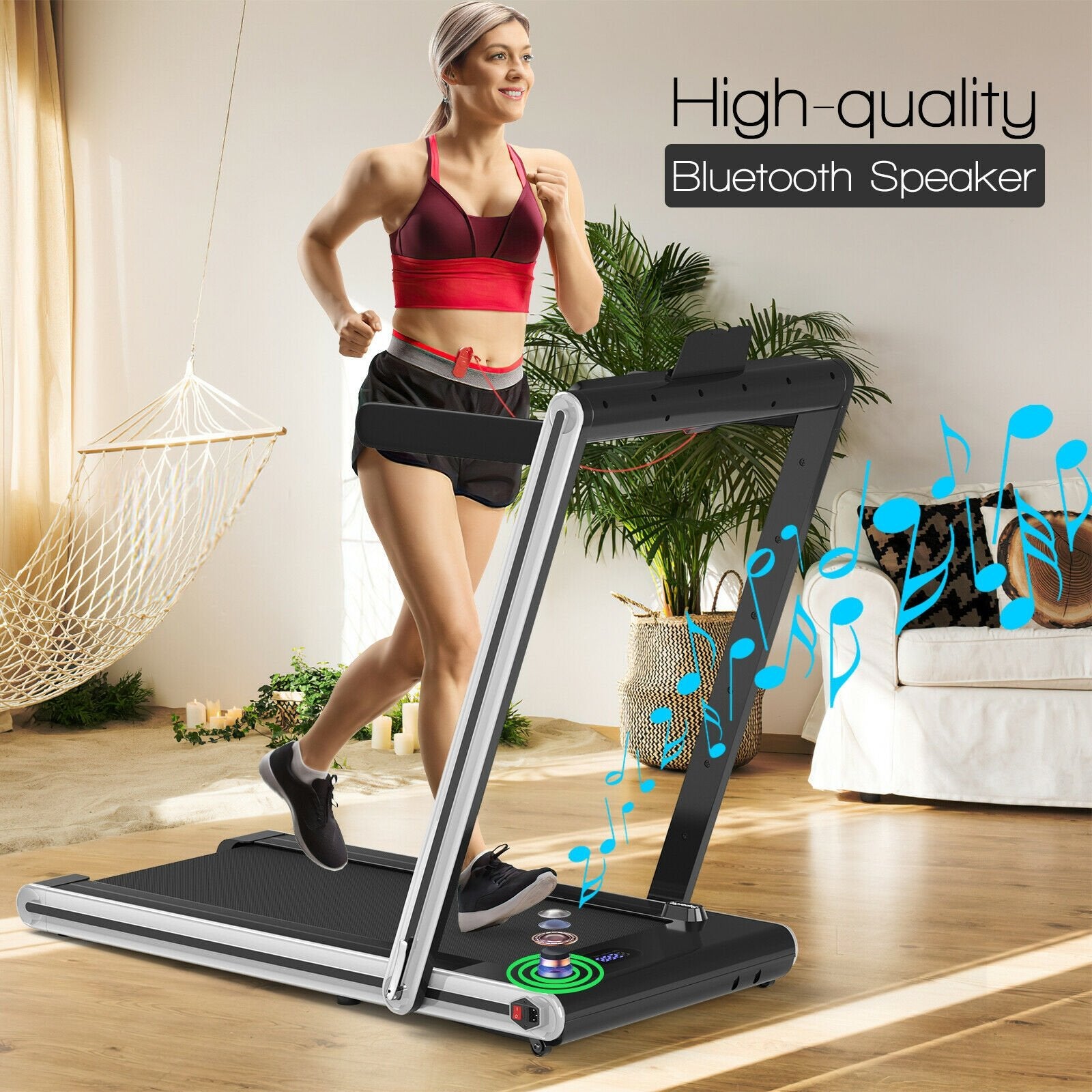 2-in-1 Folding Treadmill 2.25HP Jogging Machine with Dual LED Display-Black